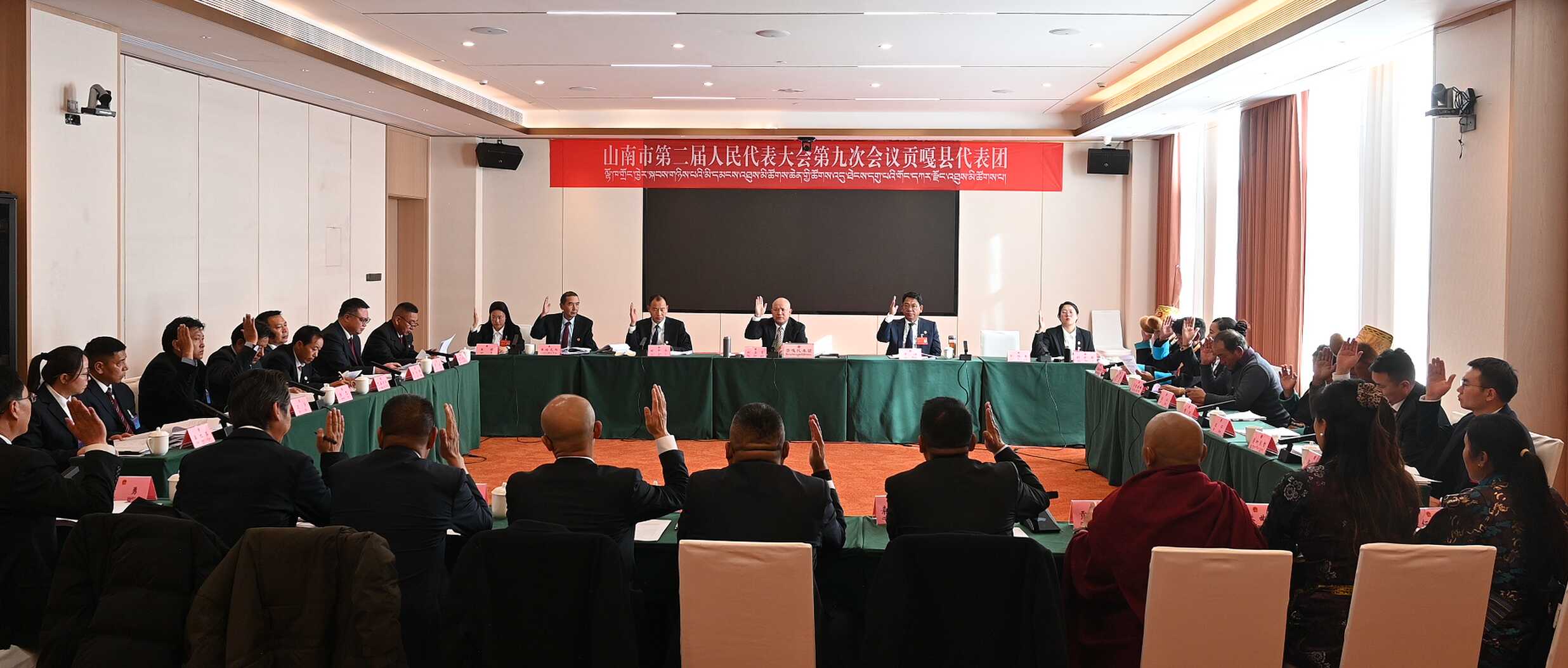 会议还审议了大会选举办法(草案)、酝酿主席团提名的各项候选人名单(草案),推选了山南市第二届人民代表大会第九次会议监票人。