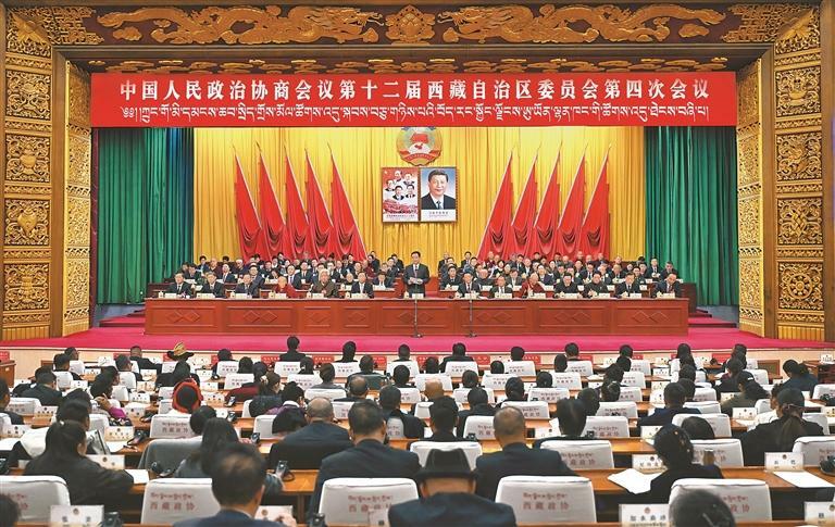 自治区政协十二届四次会议圆满完成各项议程,二月二日下午在拉萨闭幕。自治区党委书记王君正出席并讲话。本报记者 旦增西旦 摄